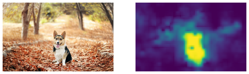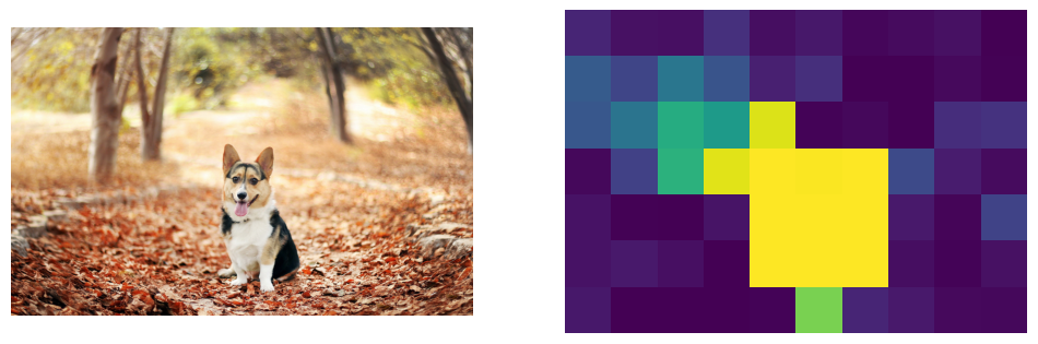 plt.axis('off')- ¿Cuál es el tamaño del mapa de calor comparado con la imagen de entrada?